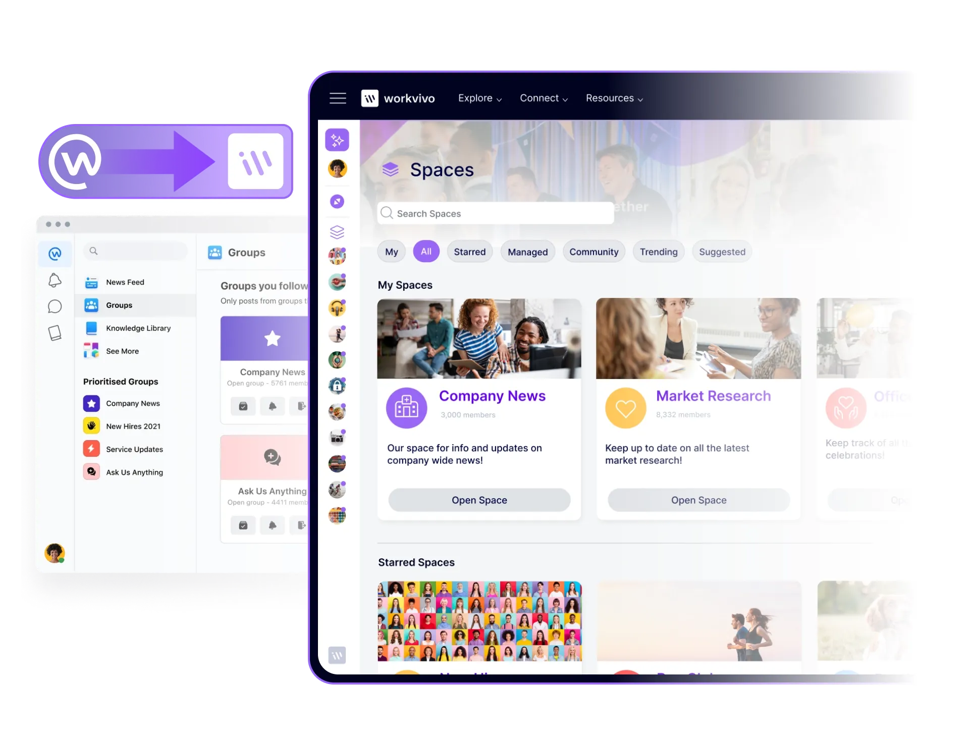 على عكس أي منصات أخرى، فإن Workvivo هو المورّد الوحيد الذي يمكنه ترحيل سجل Work Chat الكامل.