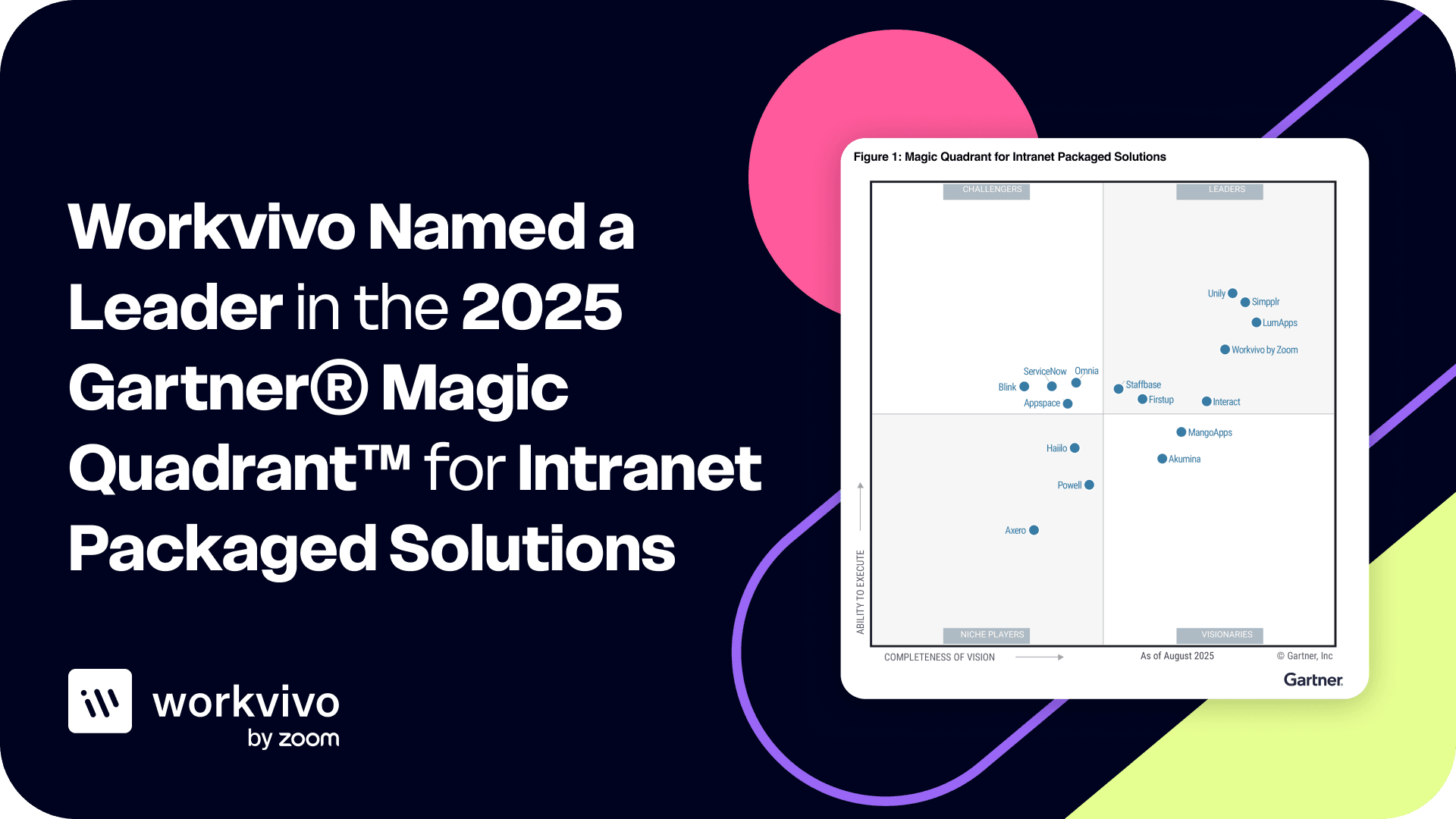 It’s here! The 2025 Gartner Magic Quadrant for Intranet Packaged Solutions is out and we are pleased to share that Workvivo has been positioned in the Leaders quadrant for the second year in a row.