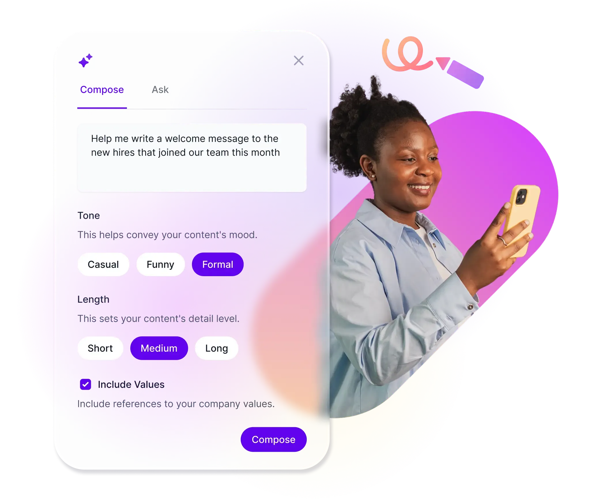 Transform company updates, newsletters and announcements into engaging content in minutes, with AI that understands your brand voice and culture.