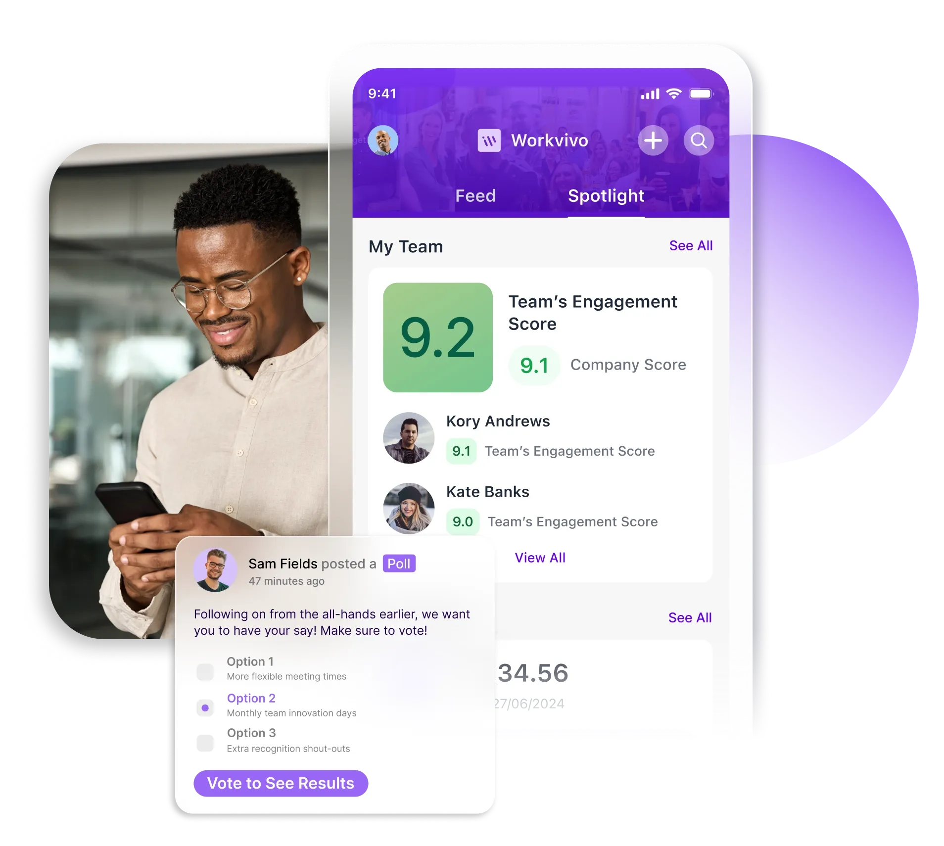 Grounded in research and powered by analytics, Workvivo People Science ensures that employee feedback leads to outcomes aligned with business goals and human needs.