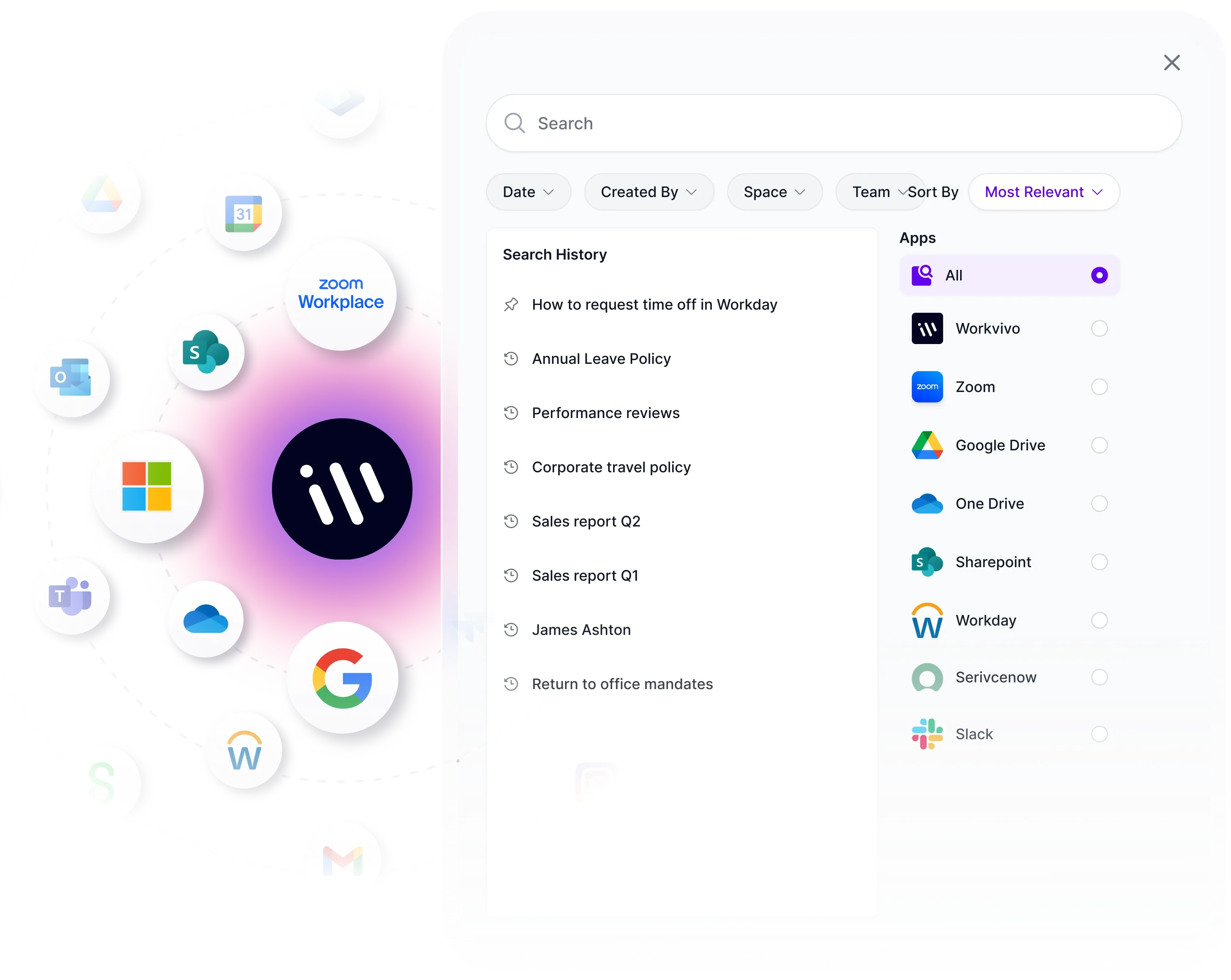 Workvivo sits on top of your existing tech stack; Zoom, Microsoft 365, Google, ServiceNow, Workday and more, unifying fragmented systems into one governed digital workplace.