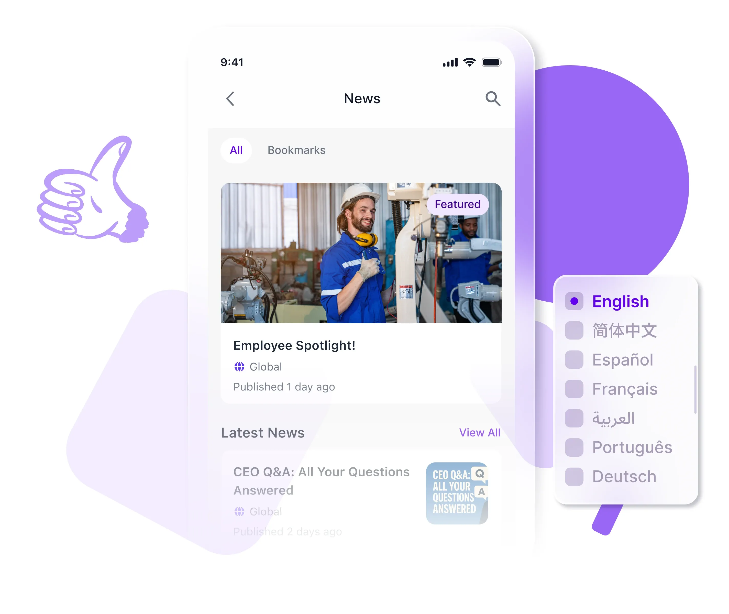 Designed for teams across multiple facilities with shift-based workers, our purpose is to engage and emotionally connect people by giving everyone a voice. We bring company culture to life digitally, helping everyone on your team feel included, appreciated, and engaged, no matter where they work.