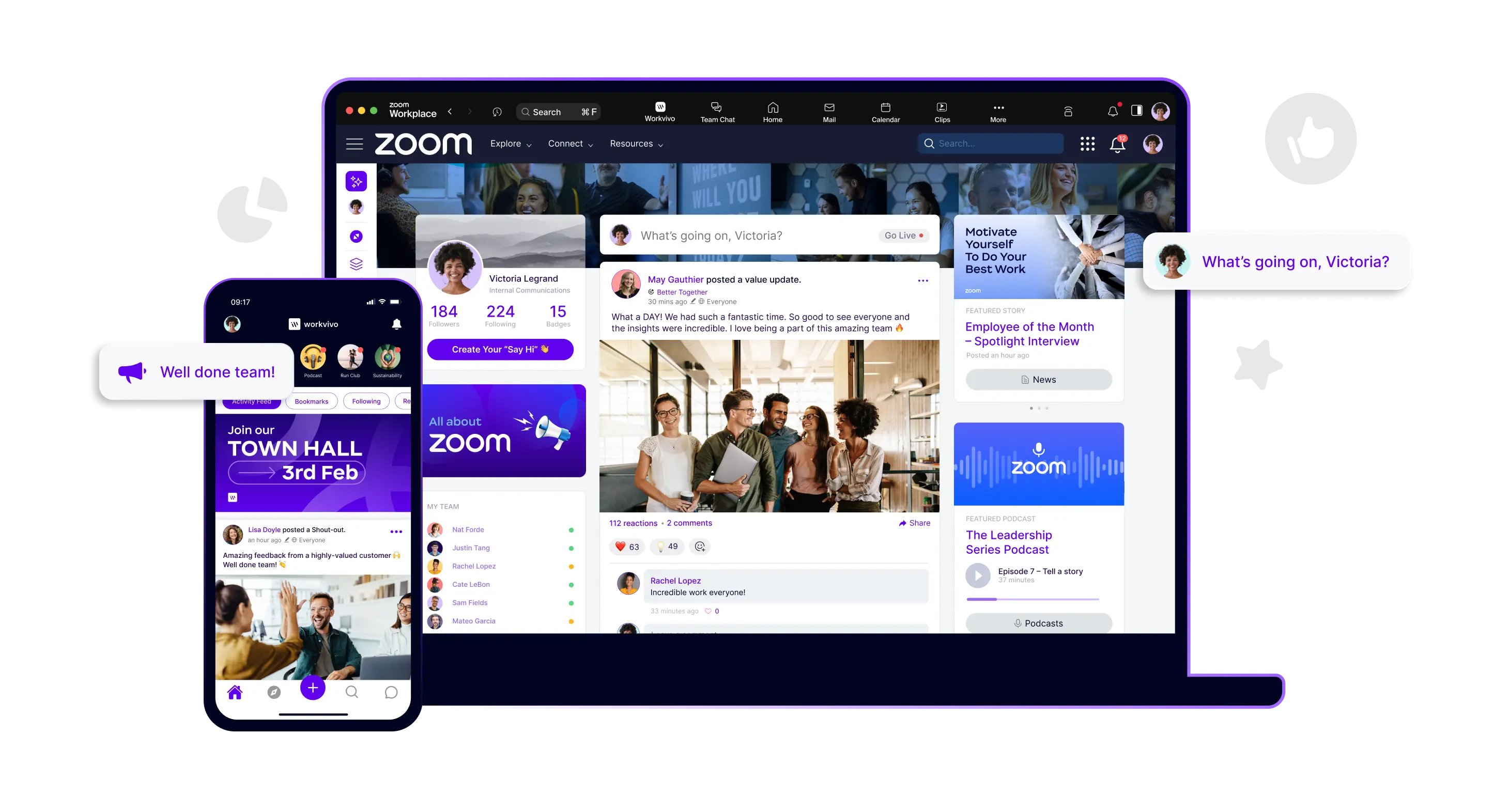 In case it wasn’t obvious that we consistently go from strength to strength, we were acquired by Zoom in 2023. Workvivo extends the Zoom Workplace platform to offer its customers new ways to keep employees informed, engaged, and connected – and our joint offering is ever-evolving.
