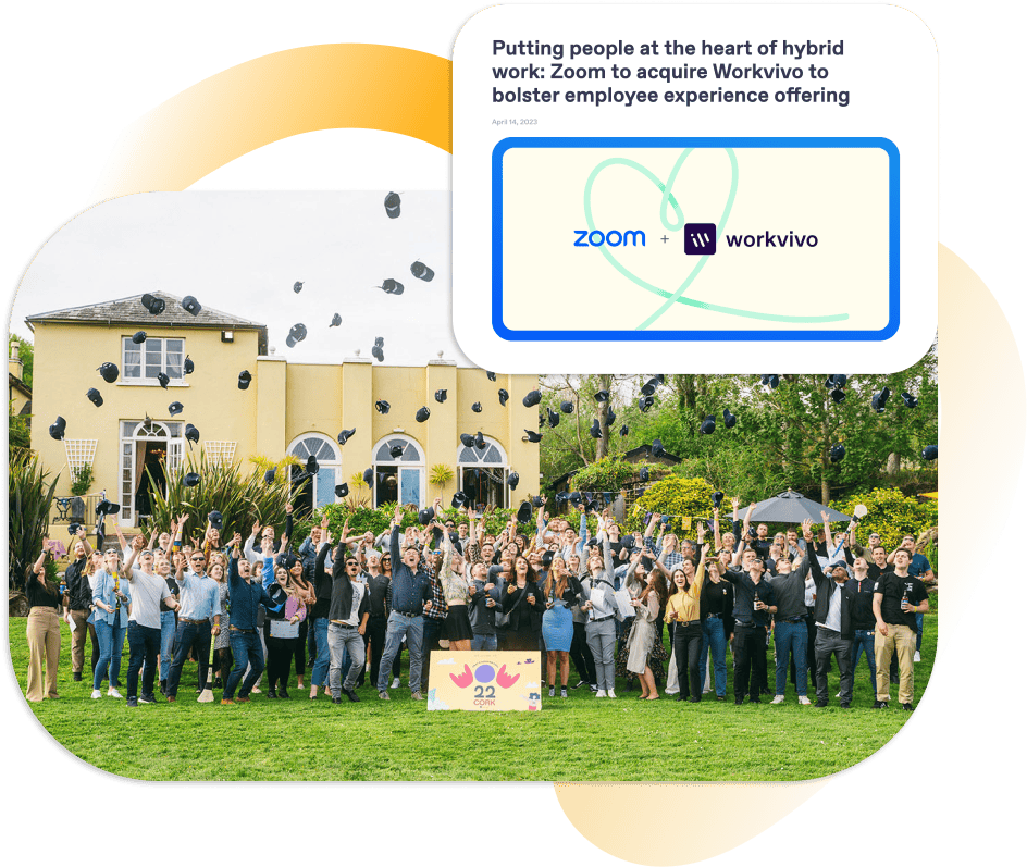 2023년 4월, 거대 기술 기업인 Zoom이 직원 경험 서비스를 강화하기 위해 Workvivo를 인수했습니다. 강력한 커뮤니케이션 및 참여 기능을 갖춘 Workvivo의 직원 경험 플랫폼의 힘과 Zoom의 올인원 협업 플랫폼이 결합되어 조직은 직원의 잠재력을 최대한 발휘하고 기업 문화를 발전시킬 수 있게 되었습니다.