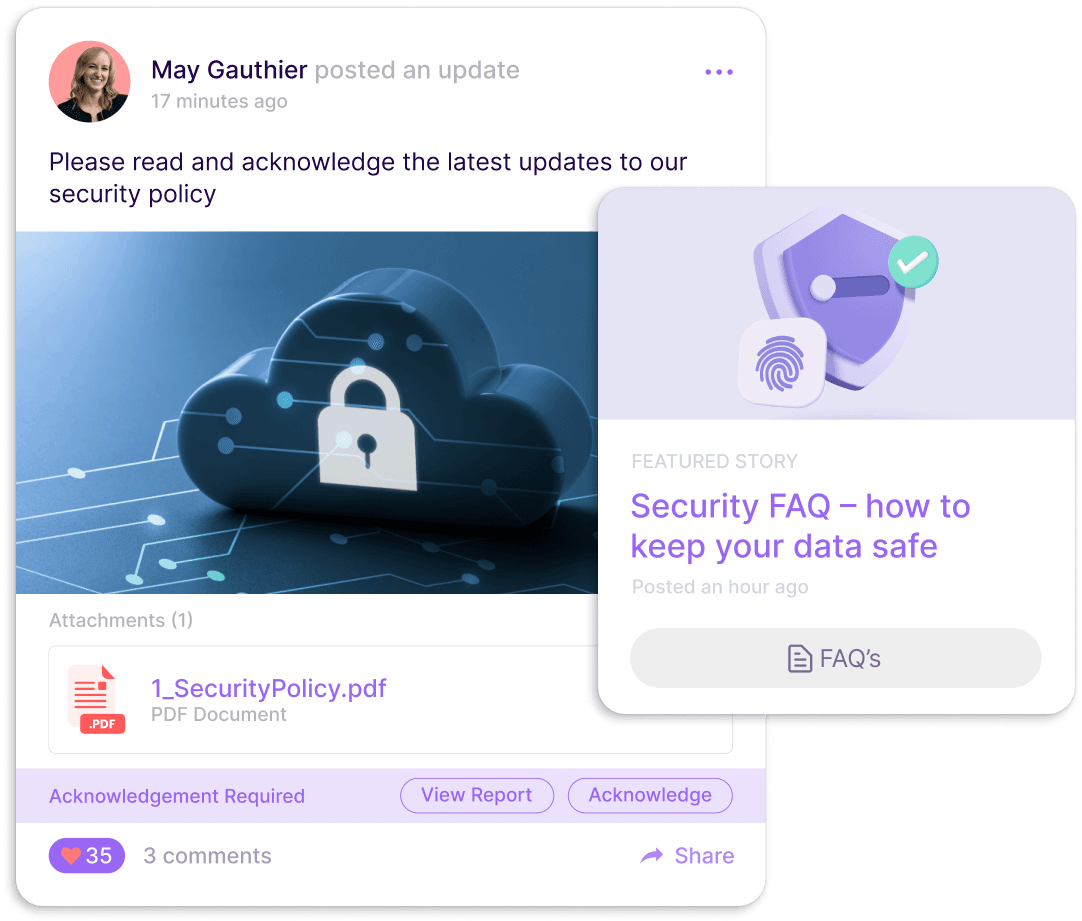 Workvivo는 포괄적인 정보 보안 관리 시스템(ISMS)에 대한 지속적인 투자를 통해 보안을 우선시하며, 기업으로서 보안 인증 분야에서 세계적으로 인정받는 여러 '최고 표준'(ISO 27001 및 SOC 2)를 계속해서 준수하고 있습니다.