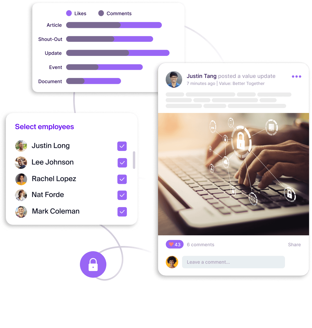 Workvivo는 포괄적인 정보 보안 관리 시스템(ISMS)에 대한 지속적인 투자를 통해 보안을 우선시하며, 기업으로서 보안 인증 분야에서 세계적으로 인정받는 여러 '최고 표준'(ISO 27001 및 SOC 2)를 계속해서 준수하고 있습니다.