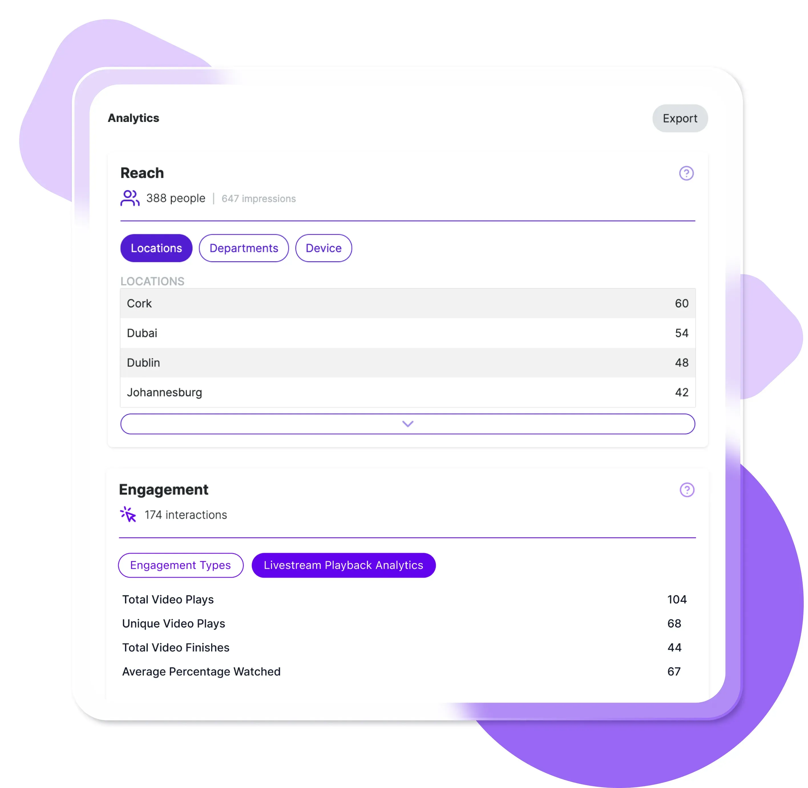 See who watched, how they engaged, and which moments resonated most.