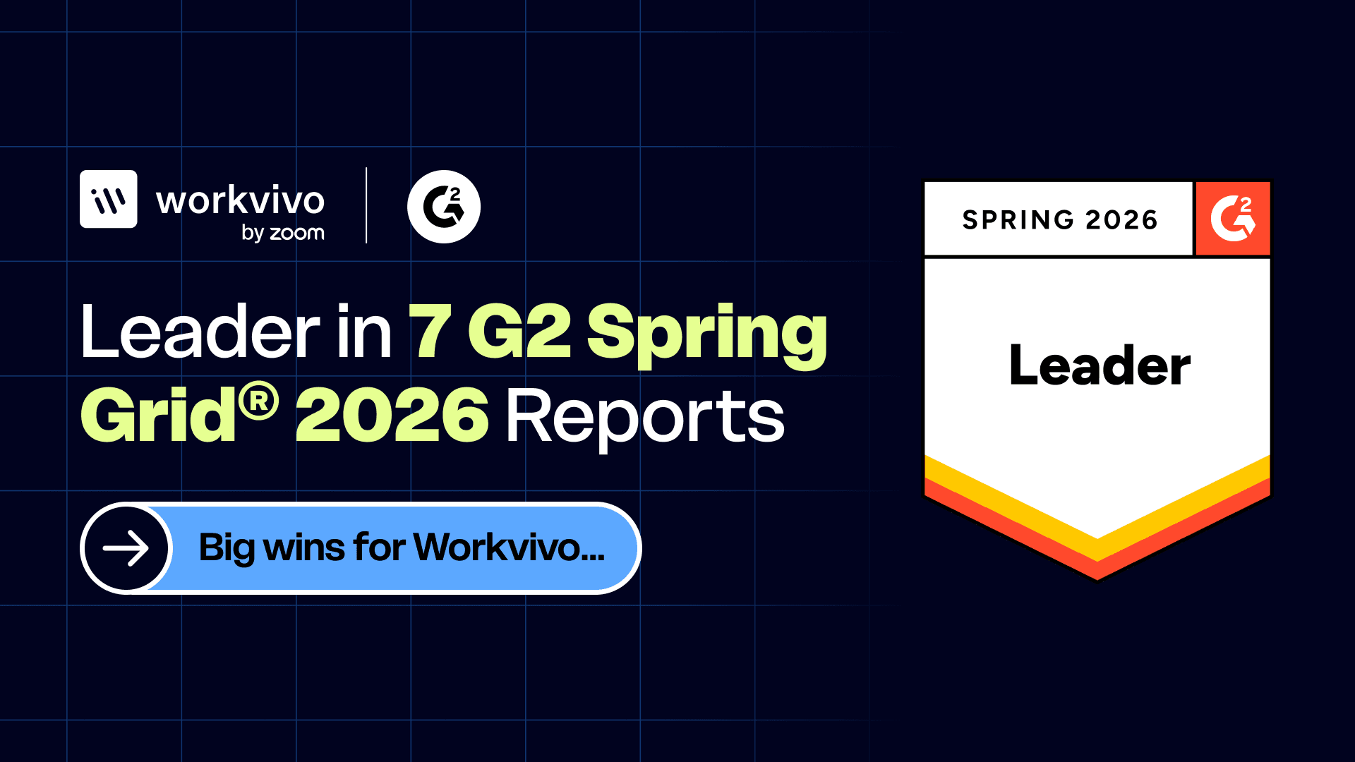 Workvivo was named a Leader across all 7 eligible Grid® Reports, with standout performance including: