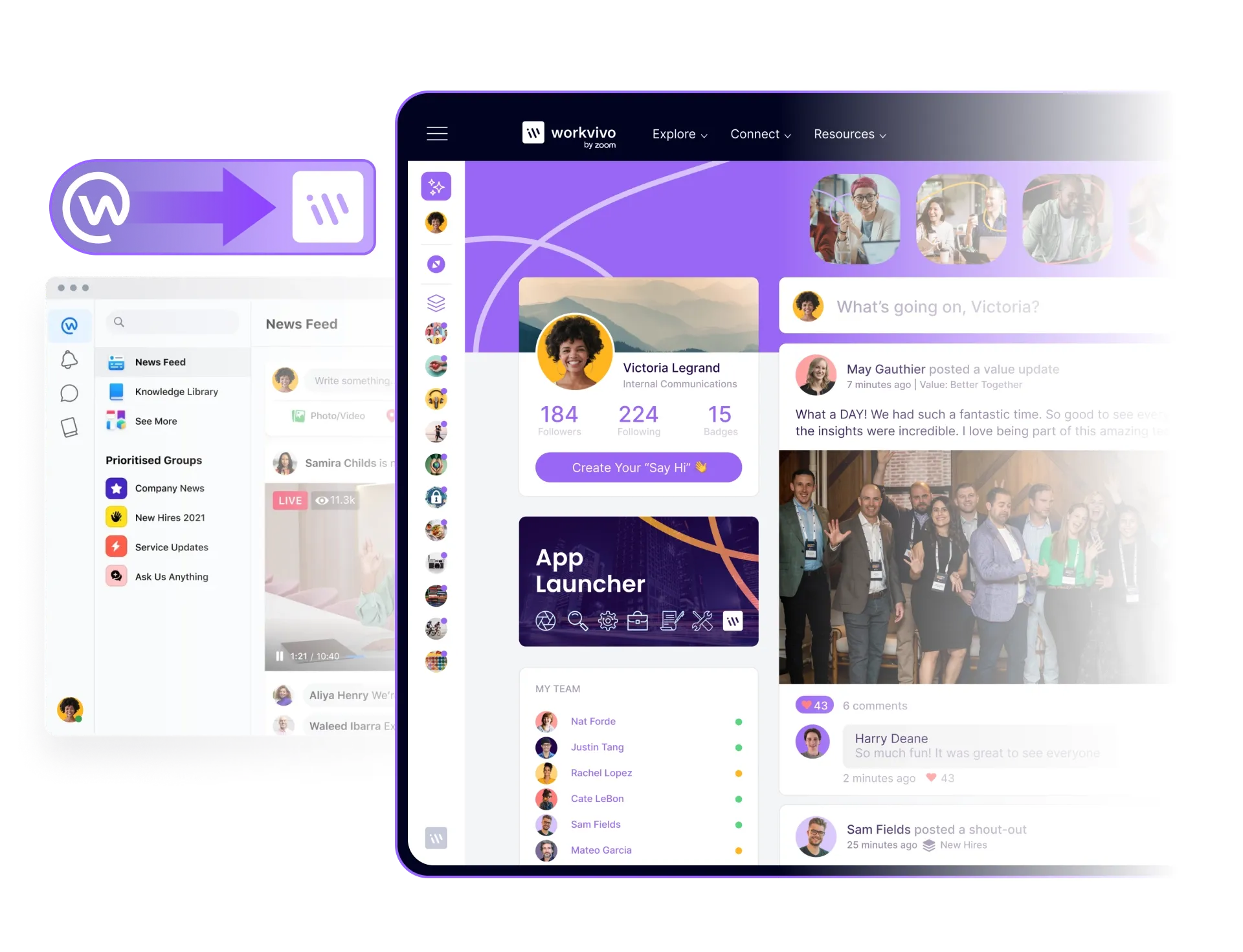 In tegenstelling tot andere platforms is Workvivo de enige provider die je volledige Work Chat-geschiedenis kan migreren.