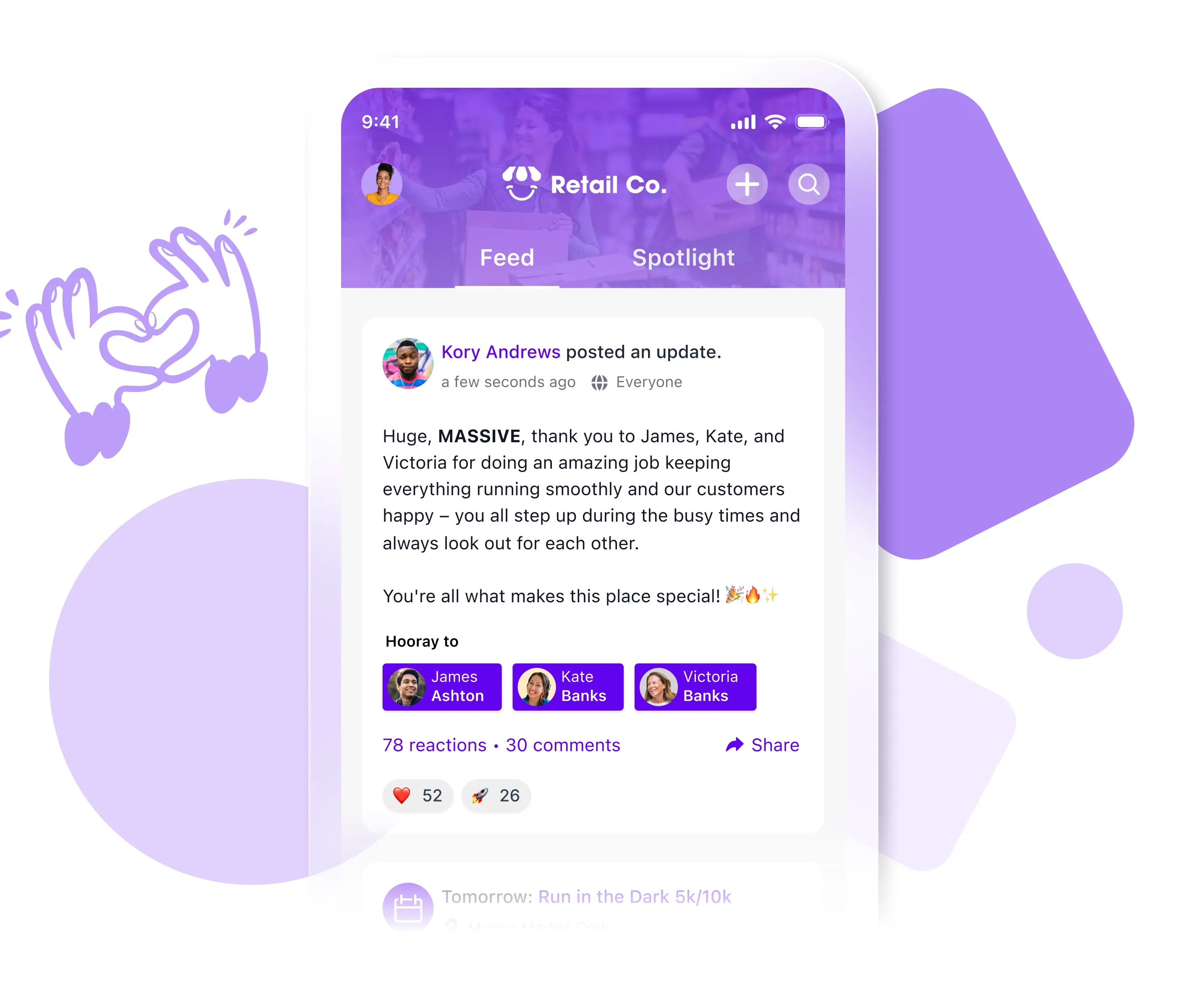 Show employees they’re a valued part of the team with Shoutouts, kudos, and peer-to-peer appreciation, so they’ll strive to do their best.