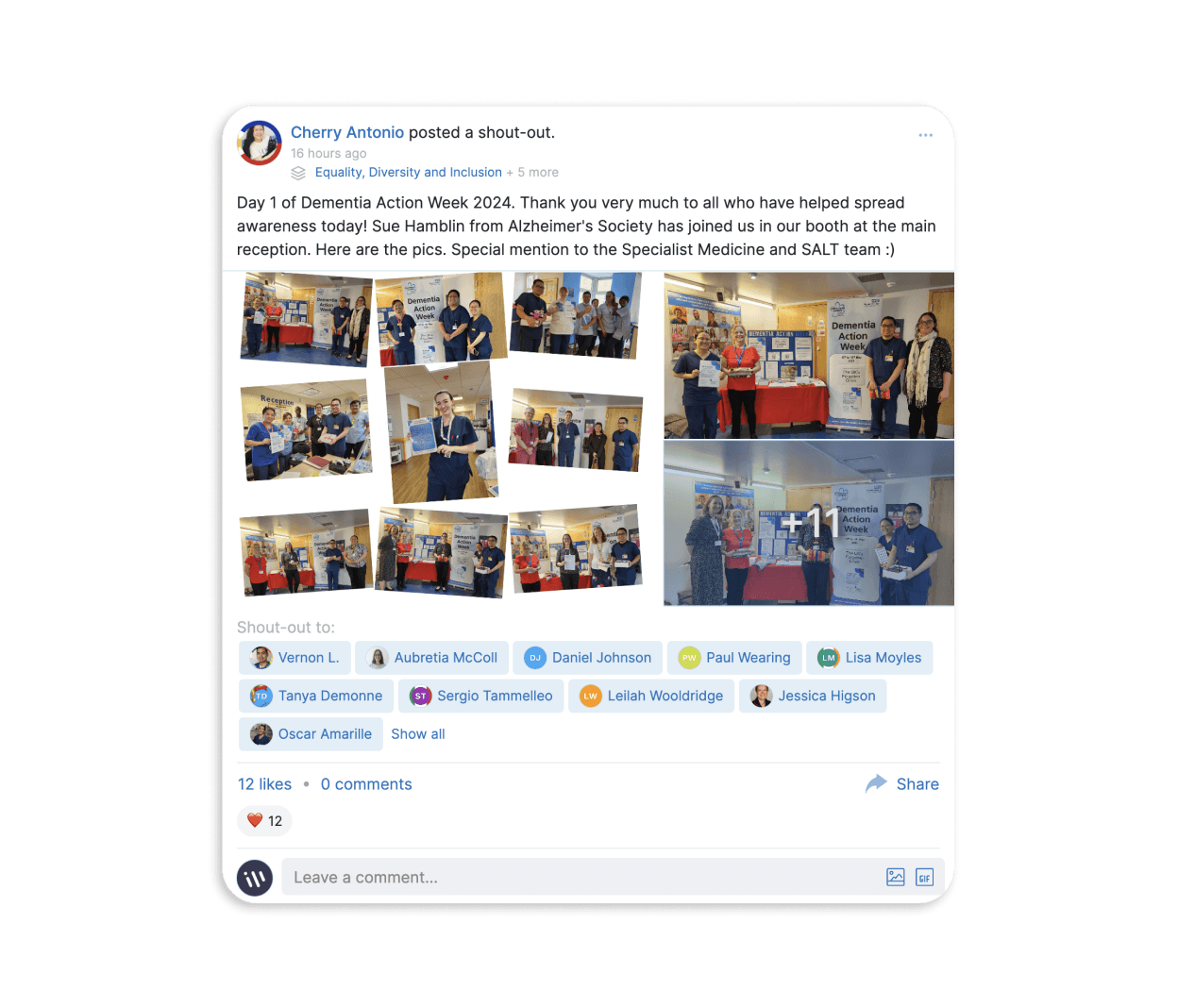 เนื่องจากเราได้รับการรับรองให้เป็นสถานที่ทำงานที่ดีเยี่ยม เราจึงมุ่งมั่นในวิธีการสื่อสาร การเชื่อมโยง และการมีส่วนร่วมกับทีมของเรา เราได้สร้างชุมชนดิจิทัลแบบครอบคลุมร่วมกับ Workvivo เพื่อแชร์ช่วงเวลาที่น่าจดจำและให้ทุกคนได้ส่งเสียงแสดงออก