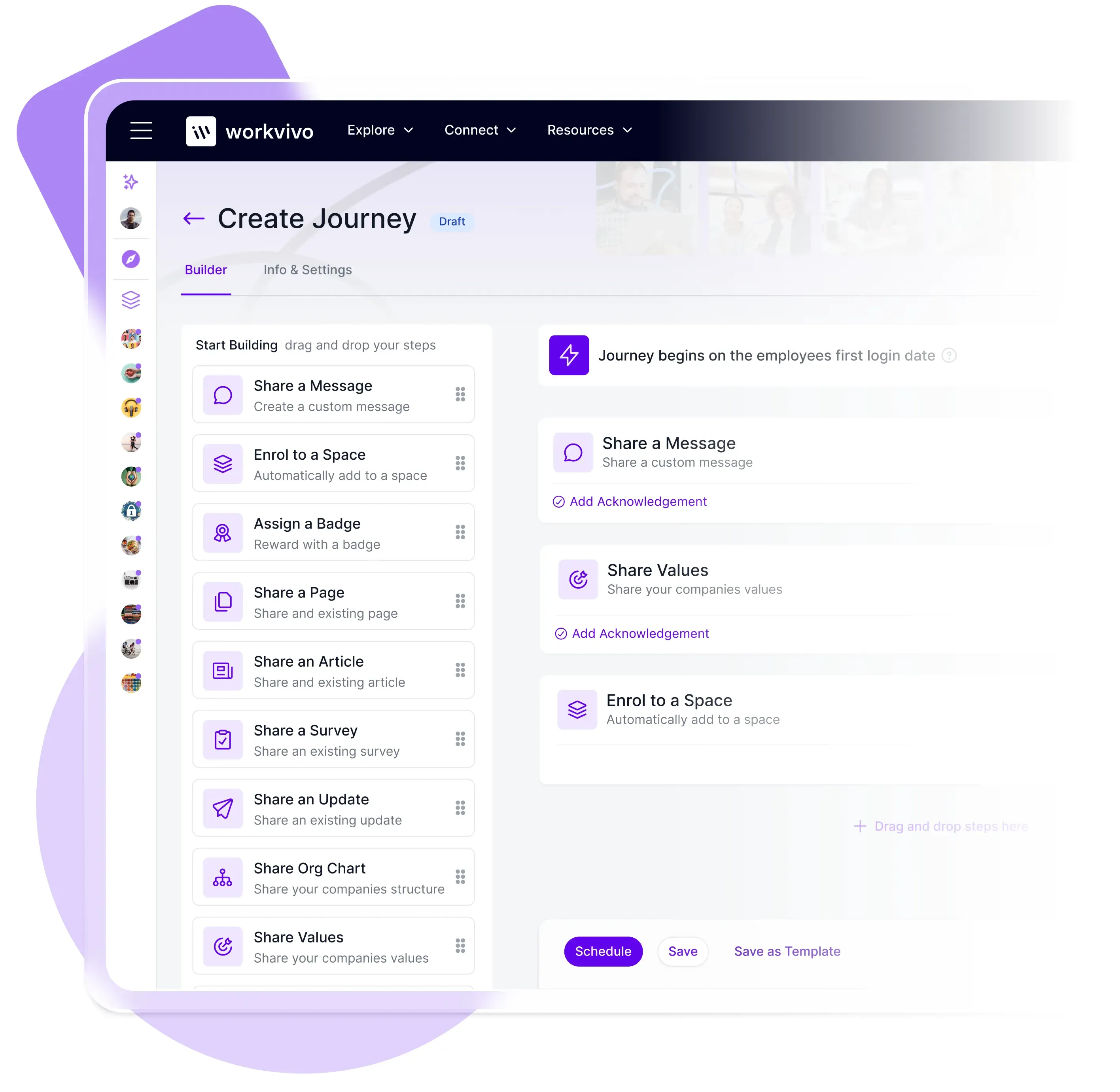 Journeys automates key communications and tasks from the moment an employee joins, welcoming them, connecting them, and helping them get productive faster.